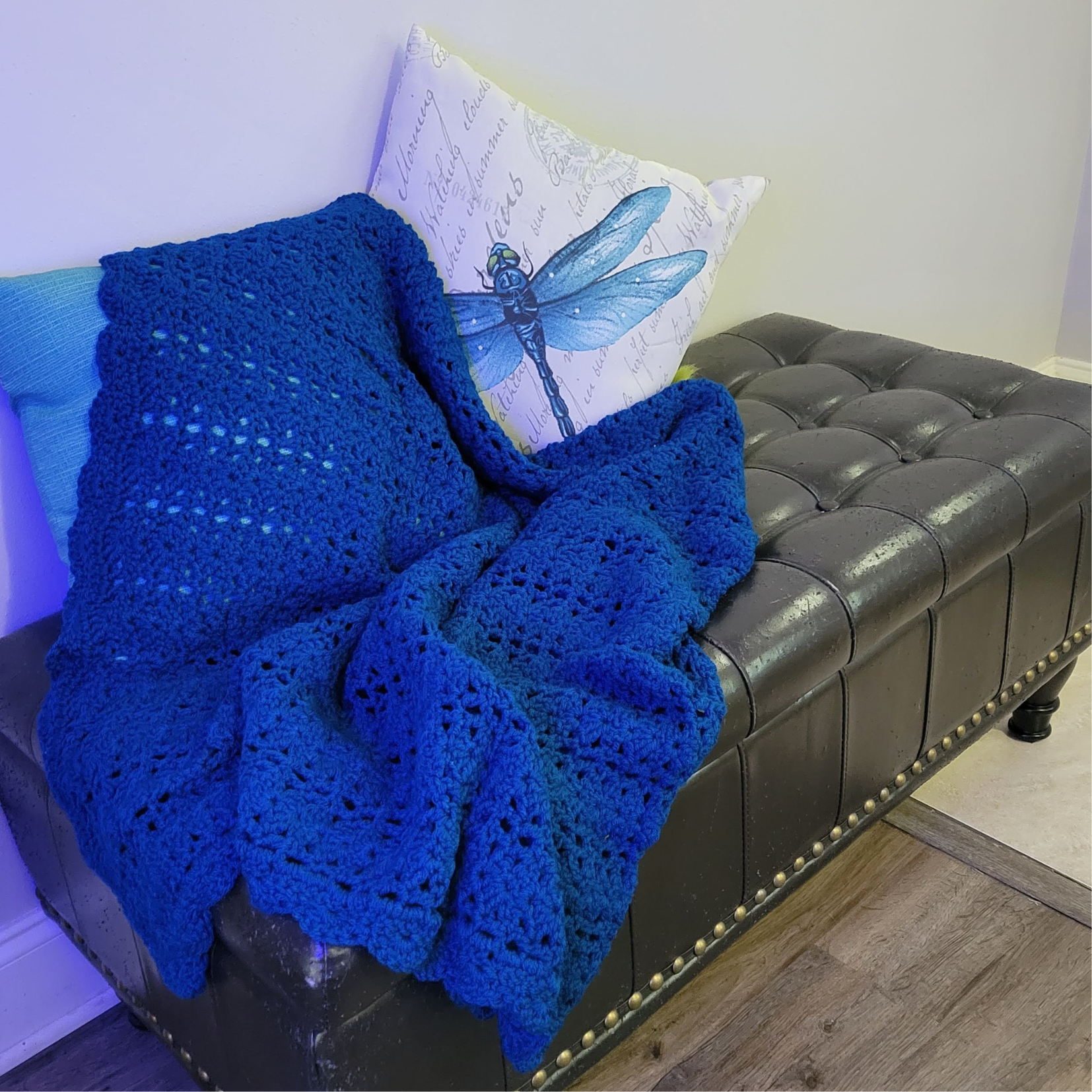 -Crocheted with a shell pattern throughout and a shell border. All blankets are the same basic pattern with color variations.