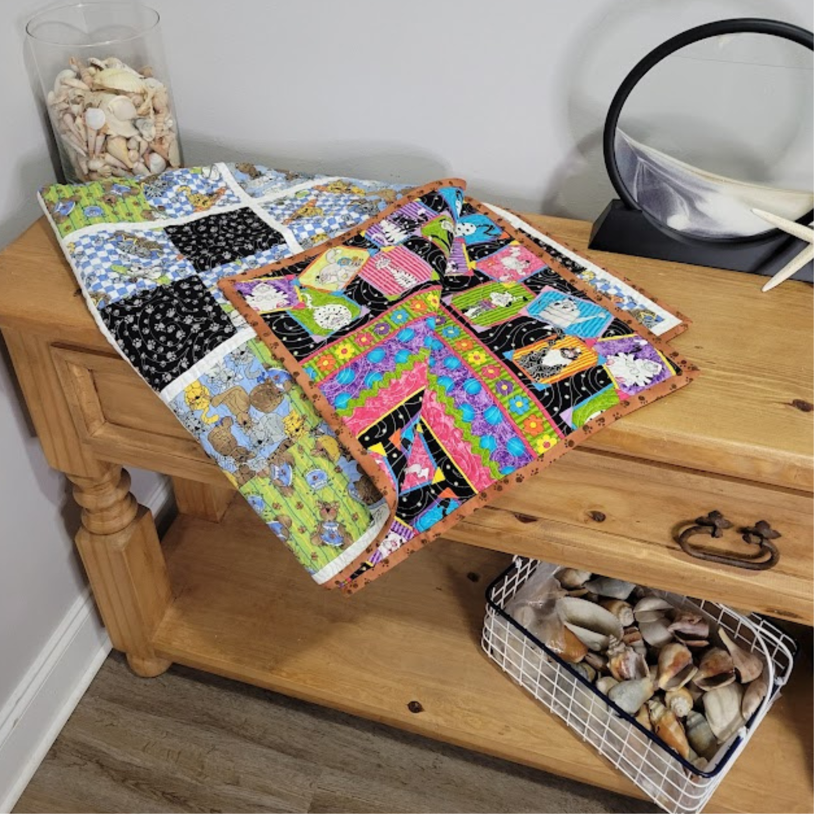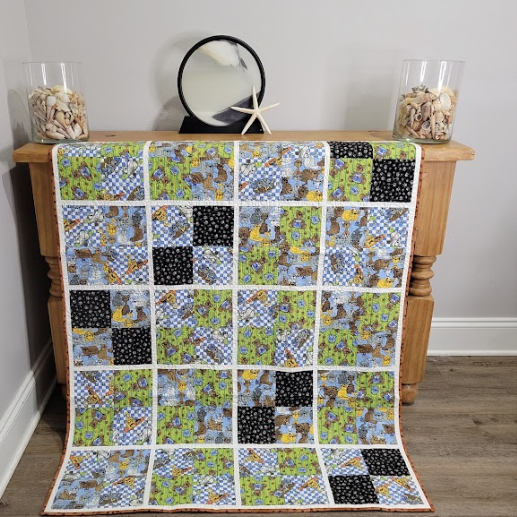 This quilt would look beautiful as a decoration on your wall or inviting when tossed on a chair.